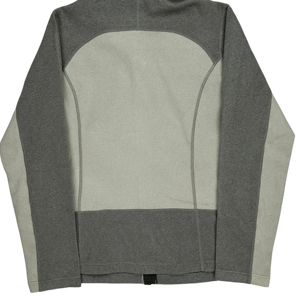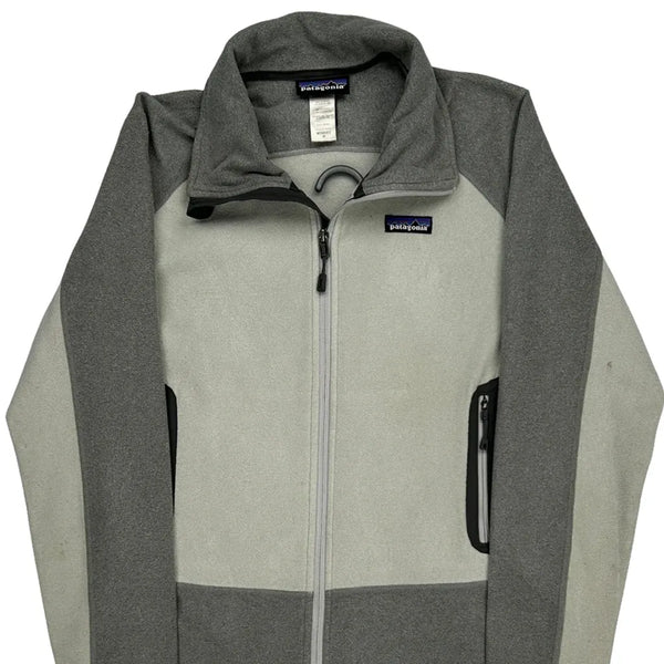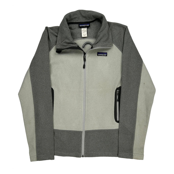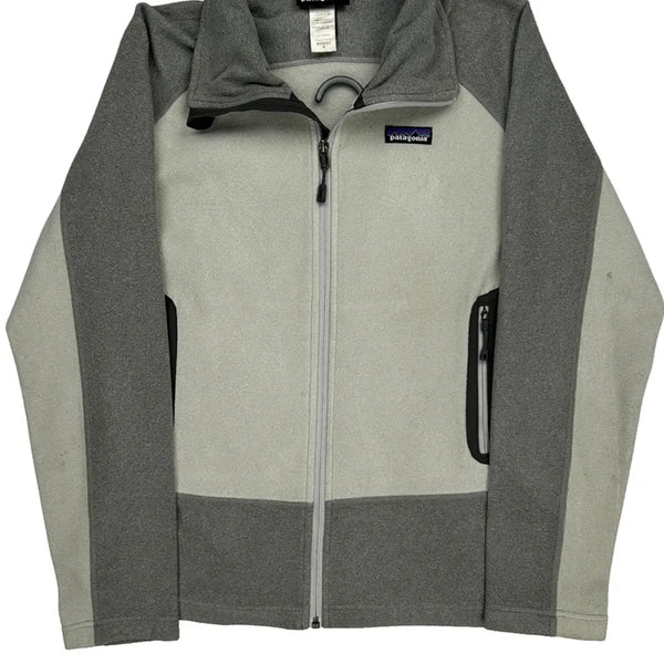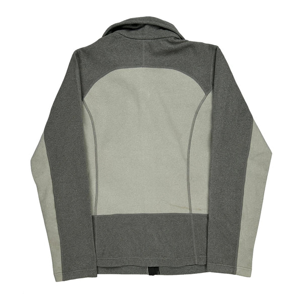 Two-Tone Grey Fleece Jacket With Zipper Closure.