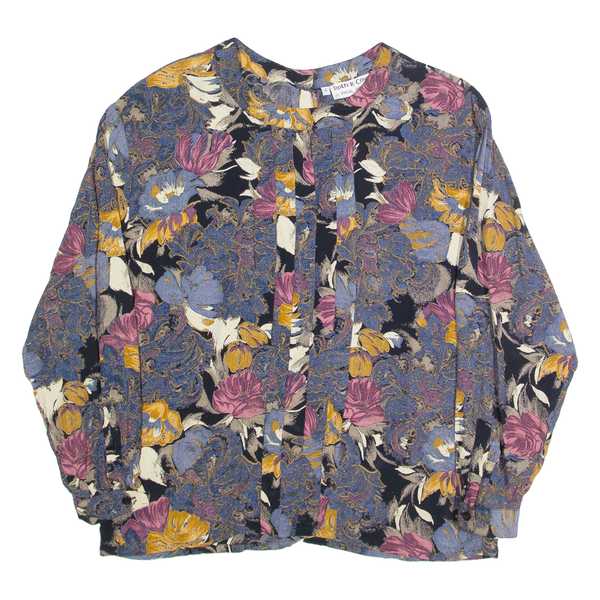 PAUL SCHNELL Womens Printed Blouse Grey Long Sleeve 90s Floral S