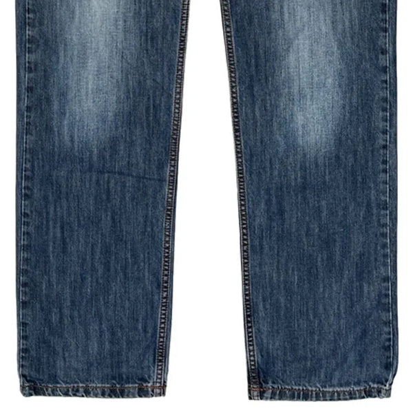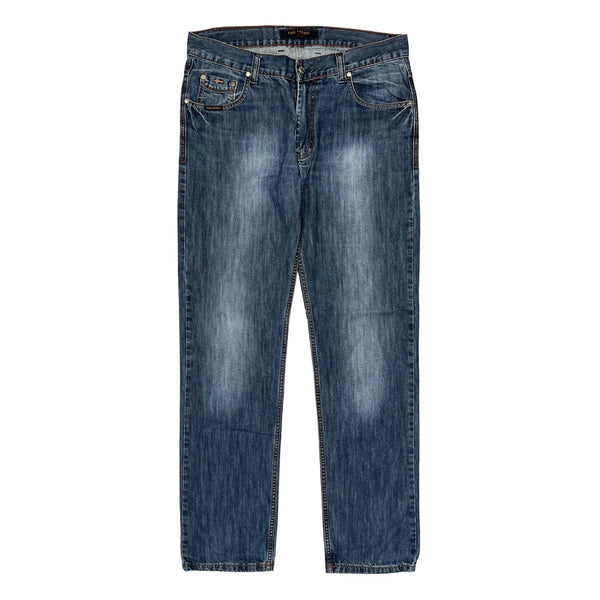 Lightly Faded Blue Jeans With Unique Back Pocket Design.