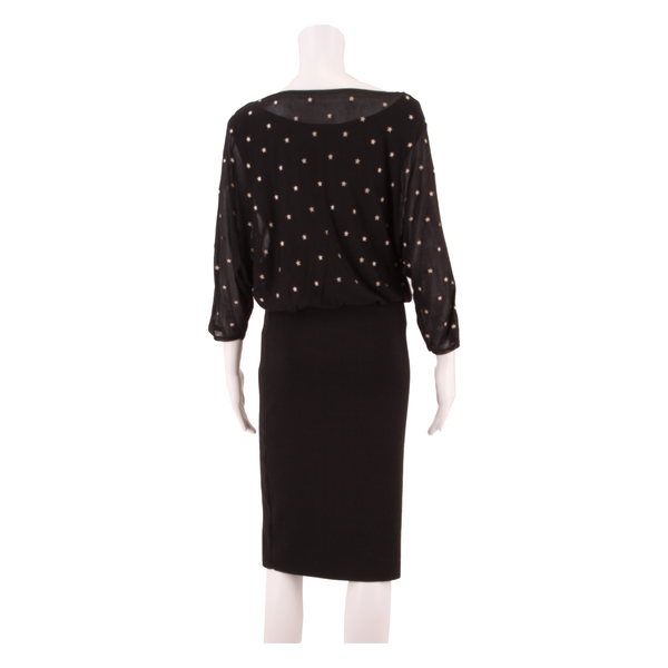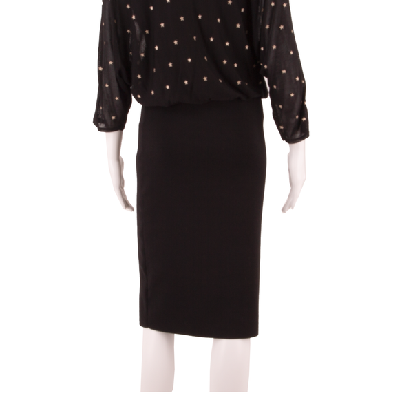 PHASE EIGHT All Over Star Print Womens Pencil Dress Black Viscose UK 12