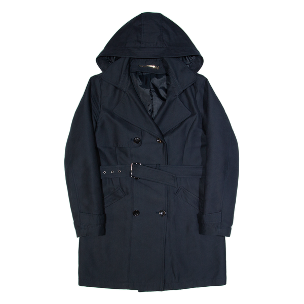 PHASE EIGHT Belted Womens Trench Coat Blue Hooded UK 12