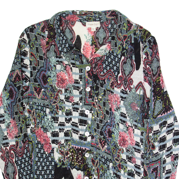 PHASE EIGHT Womens Printed Shirt Black Collared Long Sleeve Crazy Pattern M