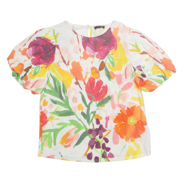 PHASE EIGHT Womens Printed Top Orange Puff Sleeve Floral L
