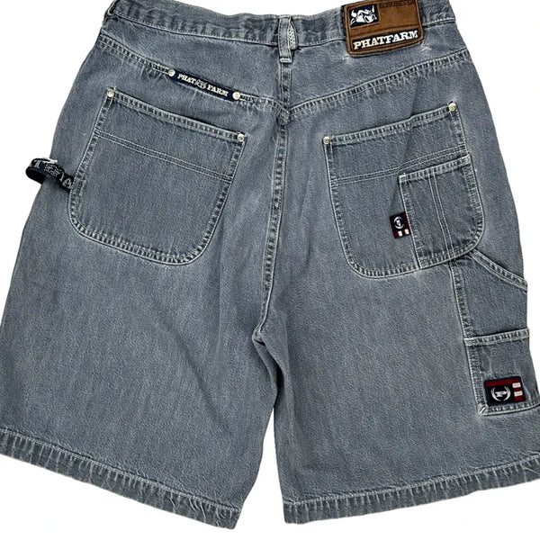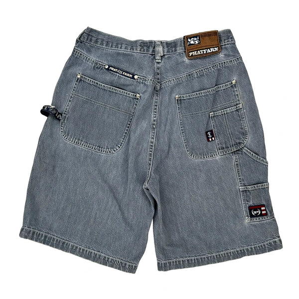 Phat Farm Denim Shorts, fit a 32″ Waist and 11″ inseam.