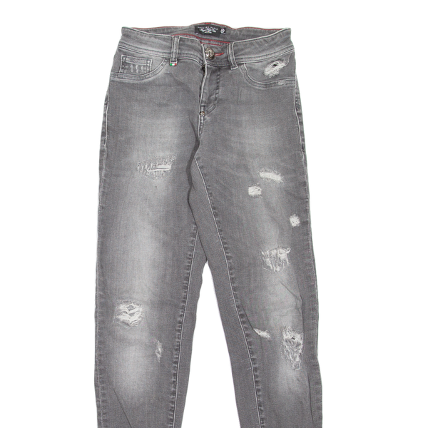 PHILIPP PLEIN Distressed Womens Jeans Grey Slim Skinny Stone Wash W25 L31