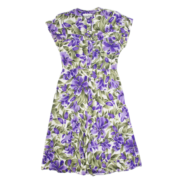 Piccalino womens a-line dress purple 90s floral short sleeve long m