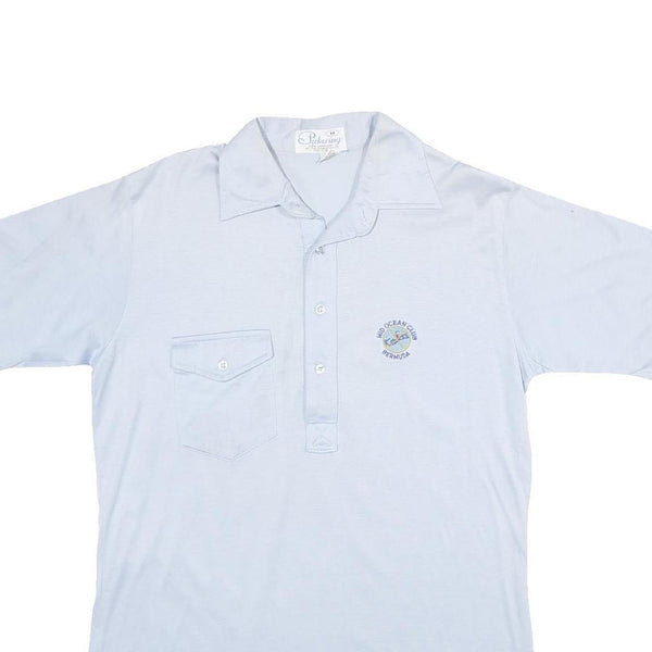PICKERING Mens Light Blue Polo Shirt M Cotton Button Pocket Plain Casual