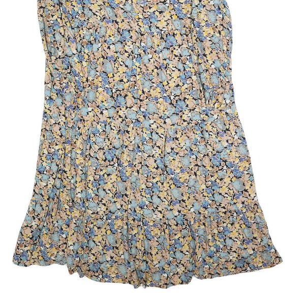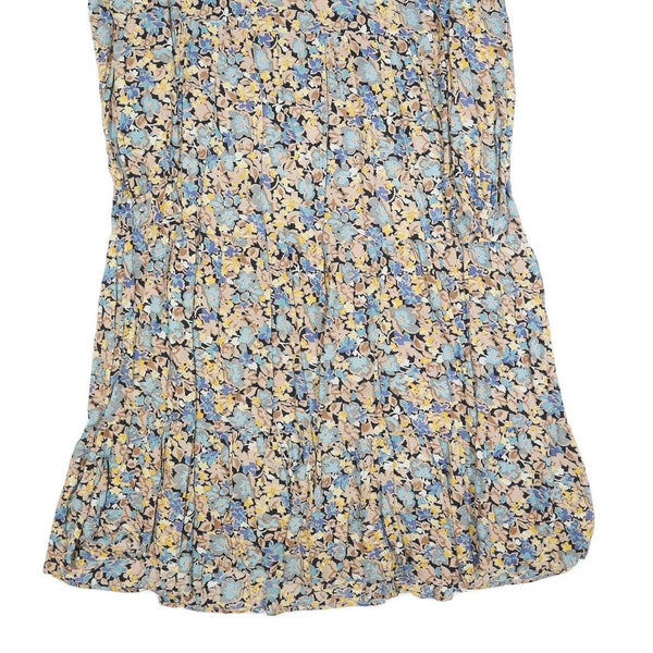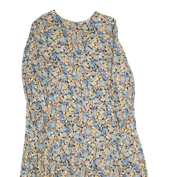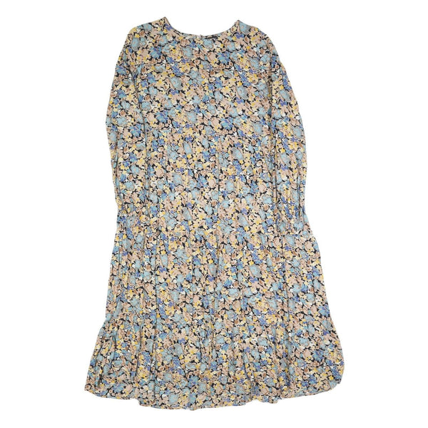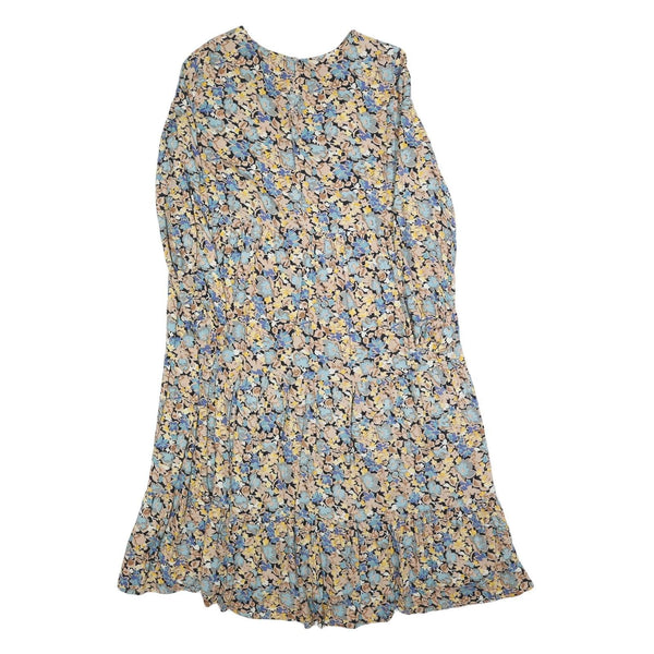 Home PIECES Womens Blue & Beige Floral Day Cotton Blend Dress M Midi Long Sleeve