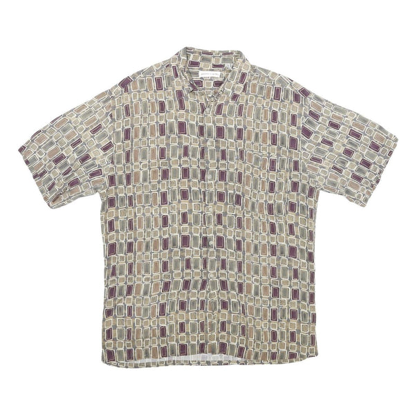 PIERRE CARDIN Mens Beige & Purple Patterned Rayon Shirt M Retro Casual Short