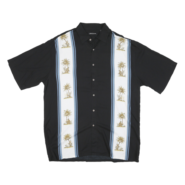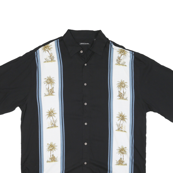 PIERRE CARDIN Mens Black & White Rayon Short Sleeve Shirt L Stylish Tropical
