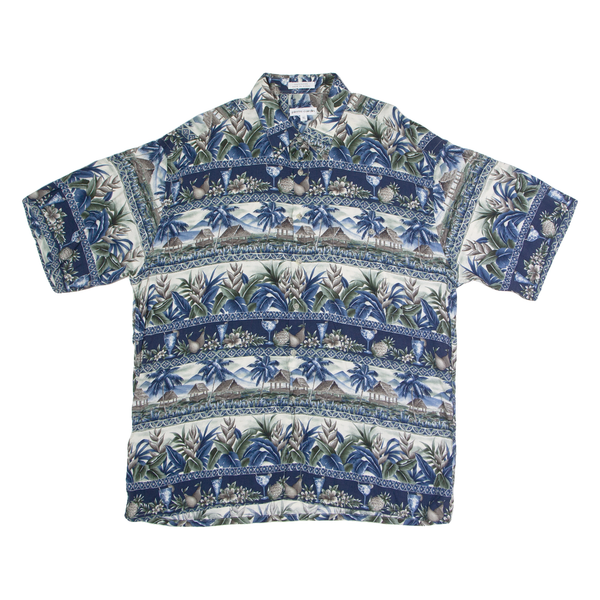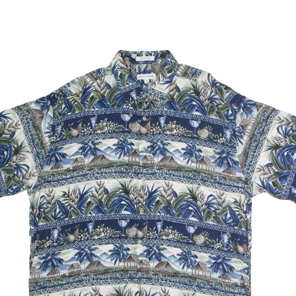PIERRE CARDIN Mens Hawaiian Shirt Blue Floral XL