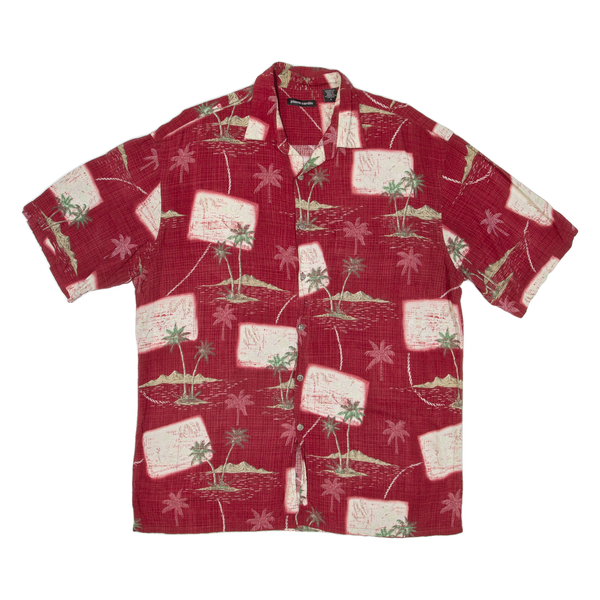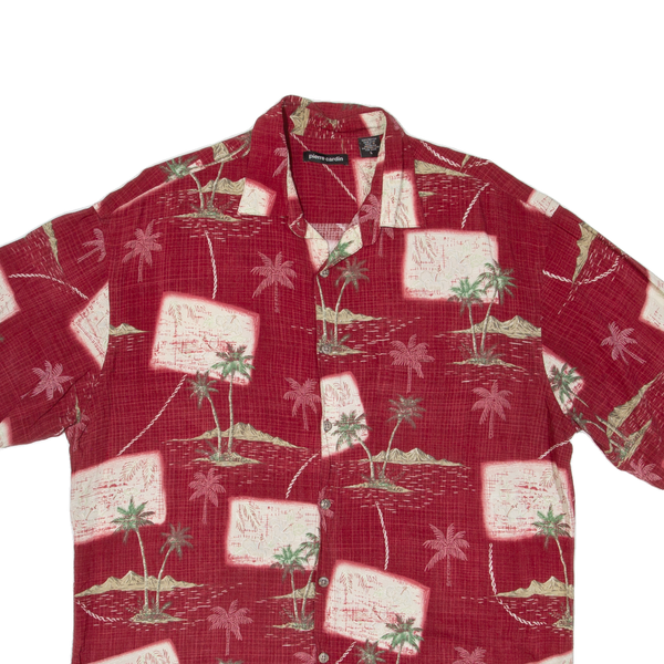 PIERRE CARDIN Mens Hawaiian Shirt Red Floral L