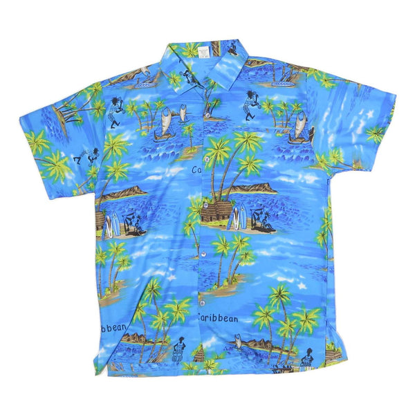 PINA Mens Blue Caribbean Print Shirt M Tropical Holiday Casual Summer