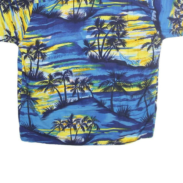 PINEAPPLE CONNECTIONS Mens Blue Yellow Pattern Hawaiian Shirt XL Summer Casual