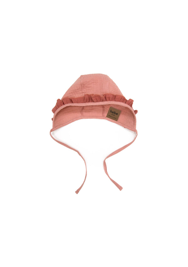 The pink muslin hat for baby girls is lightweight, breathable, and easy to wash. Complete the outfit with our matching pink muslin dress and baby bib.