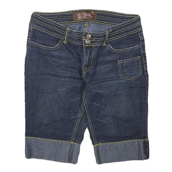 Pink womens shorts blue denim casual l w30 stylish cuffed hem pockets