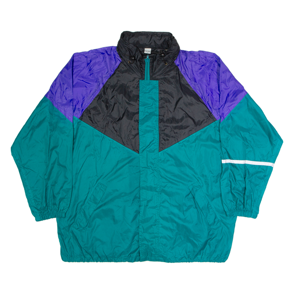 PLAY CREW Mens Shell Jacket Green Hooded Colourblock XL