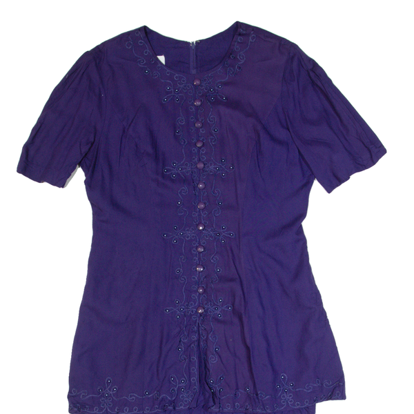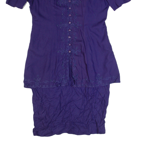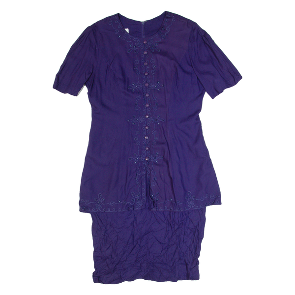 PLAZA SOUTH Womens Pencil Dress Purple 90s Short Sleeve Midi M