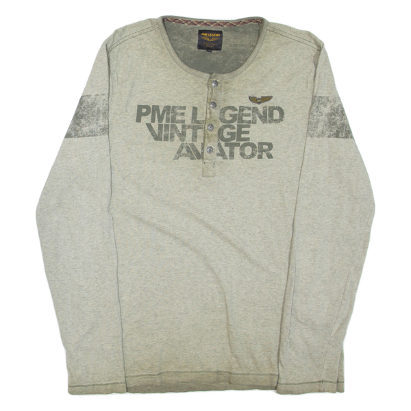 PME LEGEND Mens T-Shirt Grey Long Sleeve Button Neck L