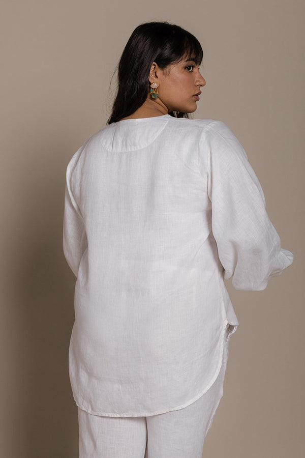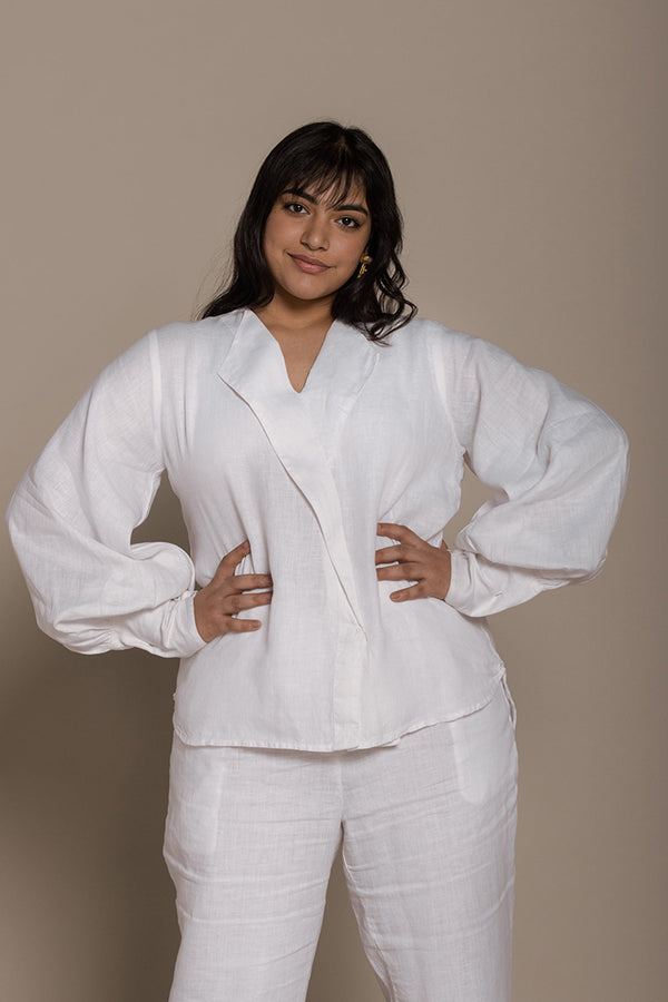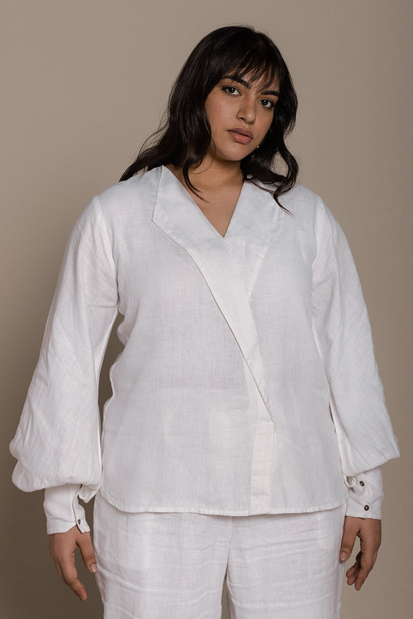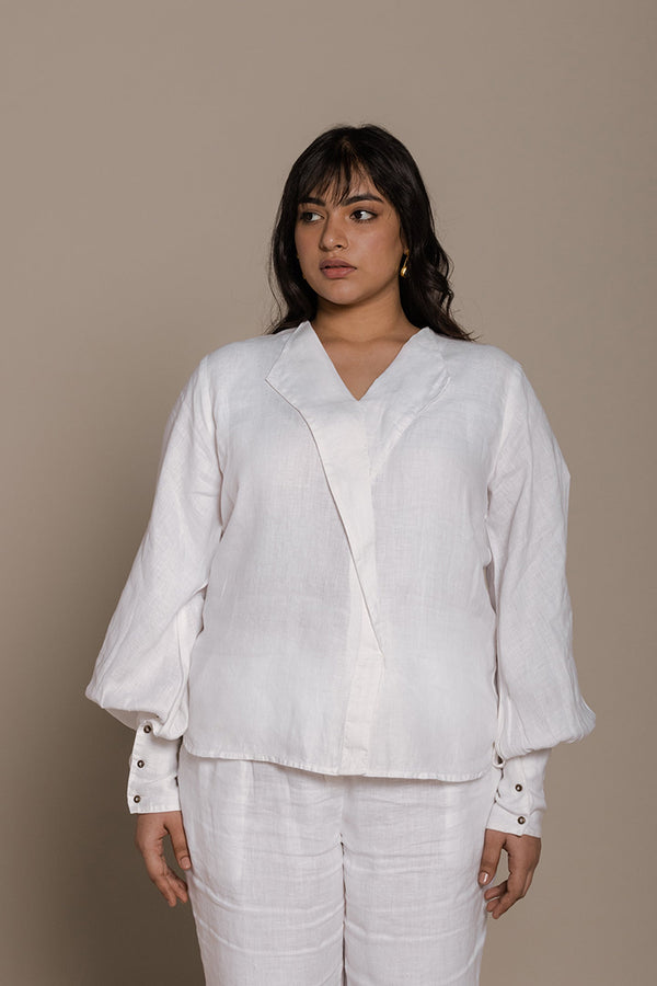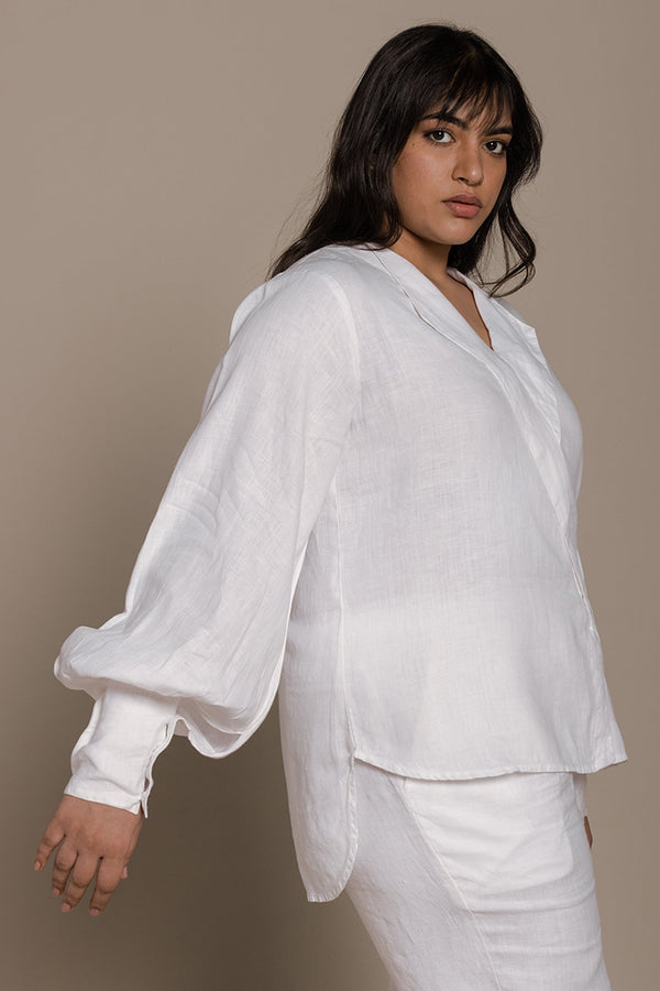With timeless balloon sleeves and an extended 6-inch cuff with buttoned detailing, this shirt exudes an elegant vintage vibe.