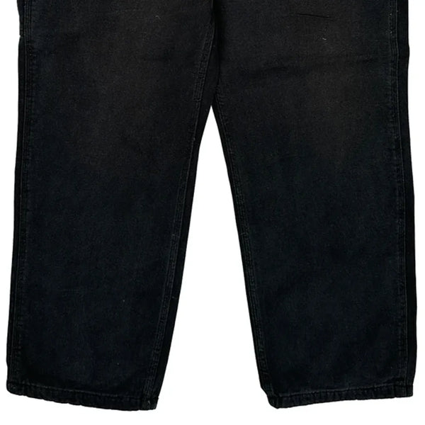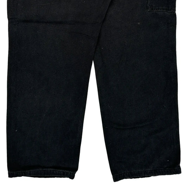 Black Carpenter Trousers With Double Knee And Multiple Pockets.