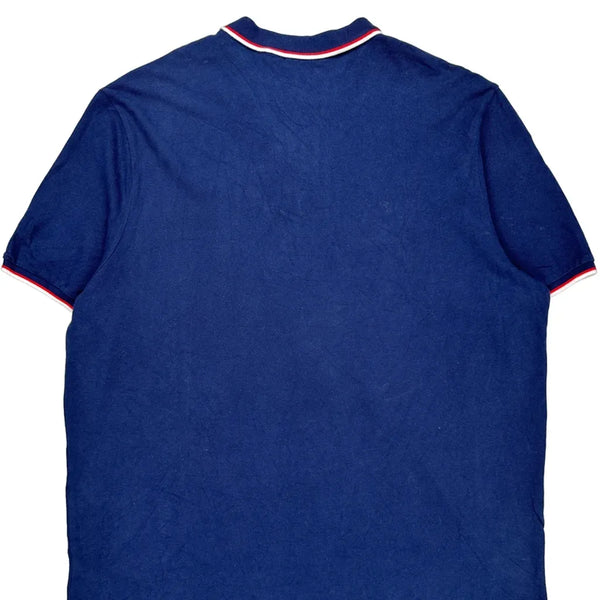 Navy Blue Polo Shirt With Red Logo And Trim.