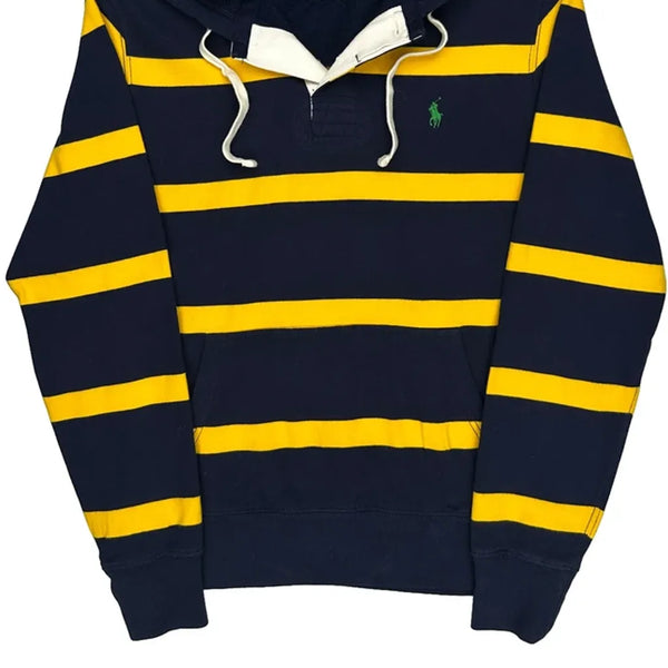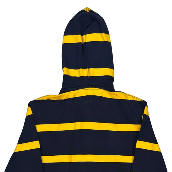 Navy And Yellow Striped Hoodie With Drawstring Hood.