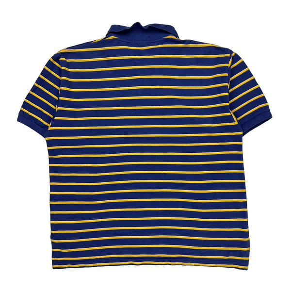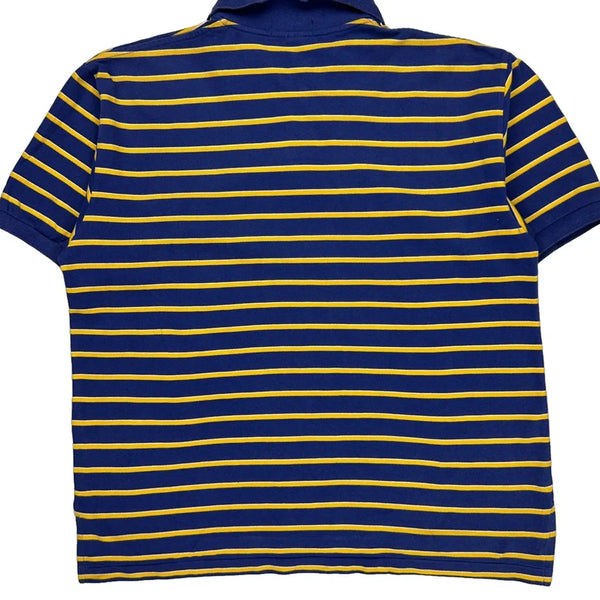Blue And Yellow Striped Polo Shirt With Red Logo