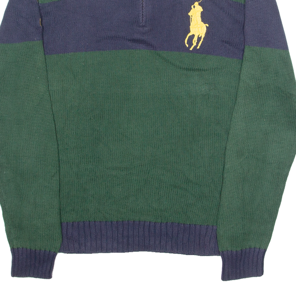 POLO RALPH LAUREN Boys Jumper Green 1/4 Zip Tight Knit XL