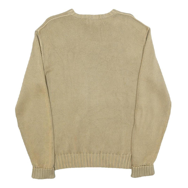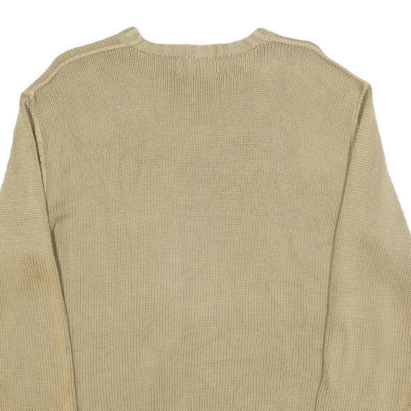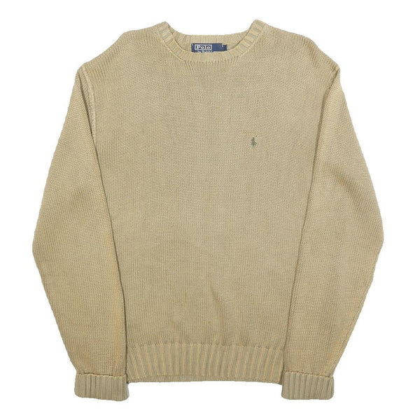 POLO RALPH LAUREN Mens Beige Plain Cotton Basic Knit Crew Neck Jumper S Classic