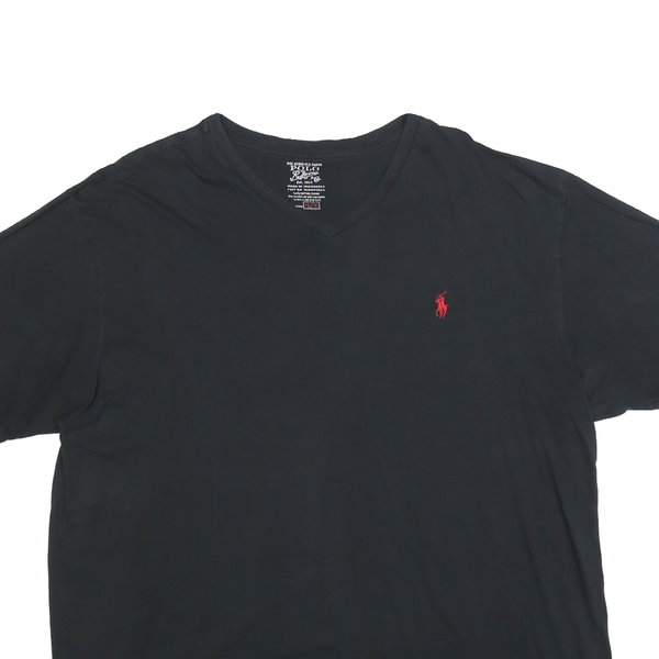 POLO RALPH LAUREN Mens Black Graphic T-Shirt XL Short Sleeve V-Neck Cotton Blend