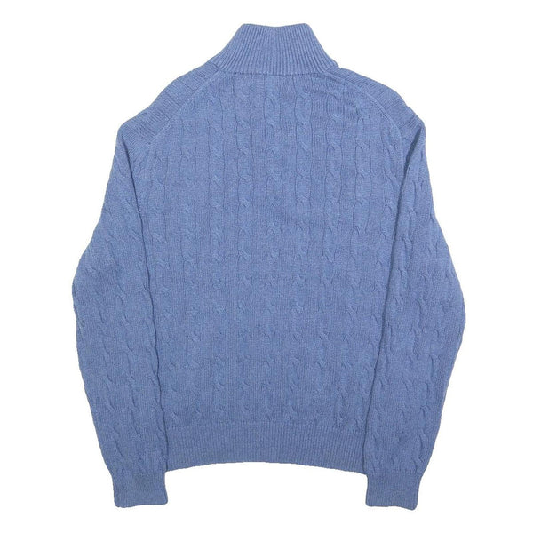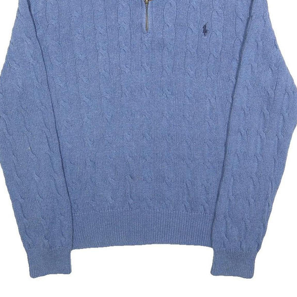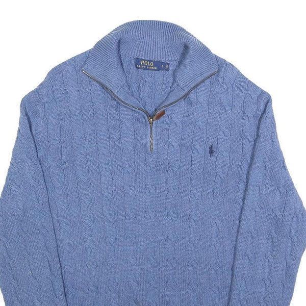 POLO RALPH LAUREN Mens Blue Cable Knit Half Zip Jumper L Cotton Classic