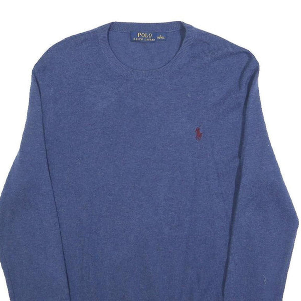 POLO RALPH LAUREN Mens Blue Jumper Plain Crew Neck Basic Knit S Wool Classic