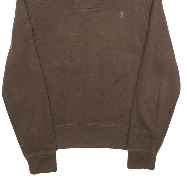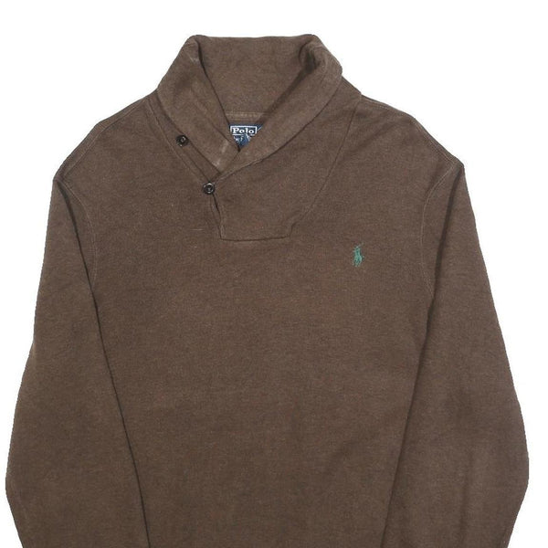 POLO RALPH LAUREN Mens Brown Plain Jumper Shawl Collar Cotton M Classic Fit