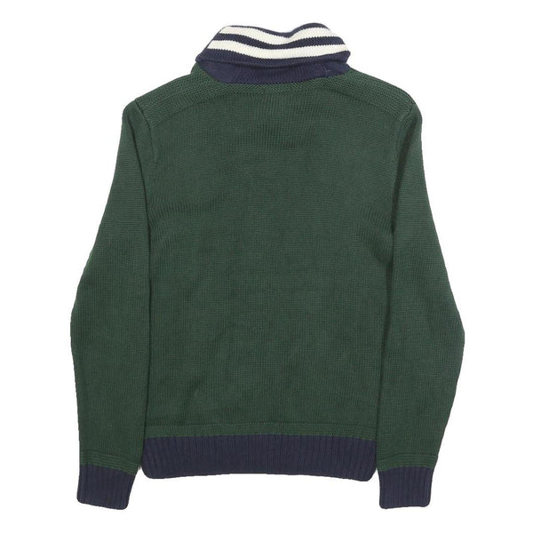 Polo ralph lauren mens green & navy shawl collar patterned jumper crew neck