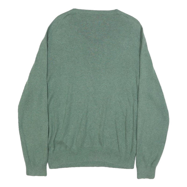 POLO RALPH LAUREN Mens Green Plain V-Neck Basic Knit Jumper M Cotton Classic