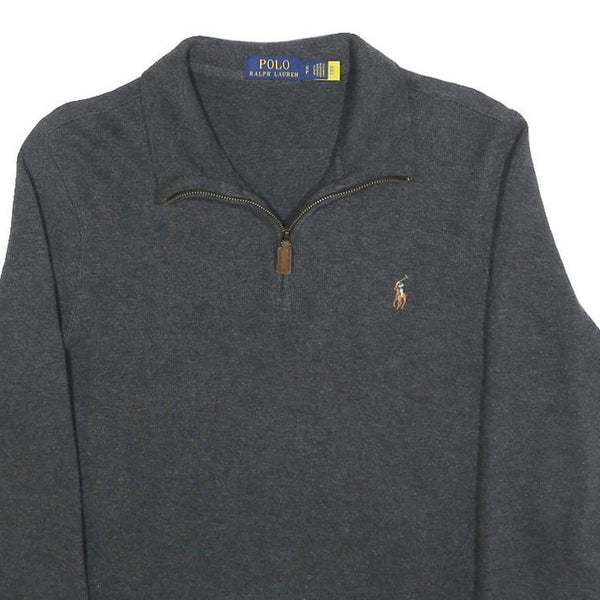 Polo ralph lauren mens grey jumper cotton pullover v-neck s classic zip knitwear