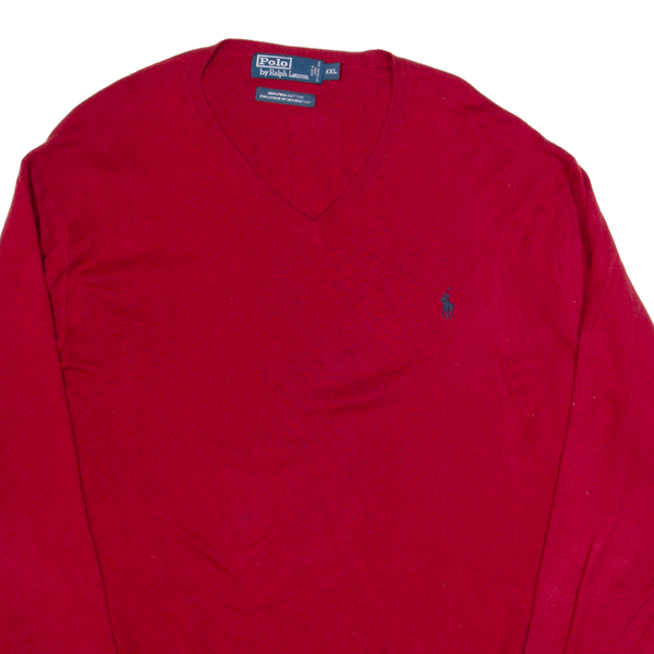 Home POLO RALPH LAUREN Mens Jumper Red V-Neck Tight Knit 2XL