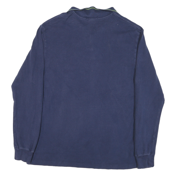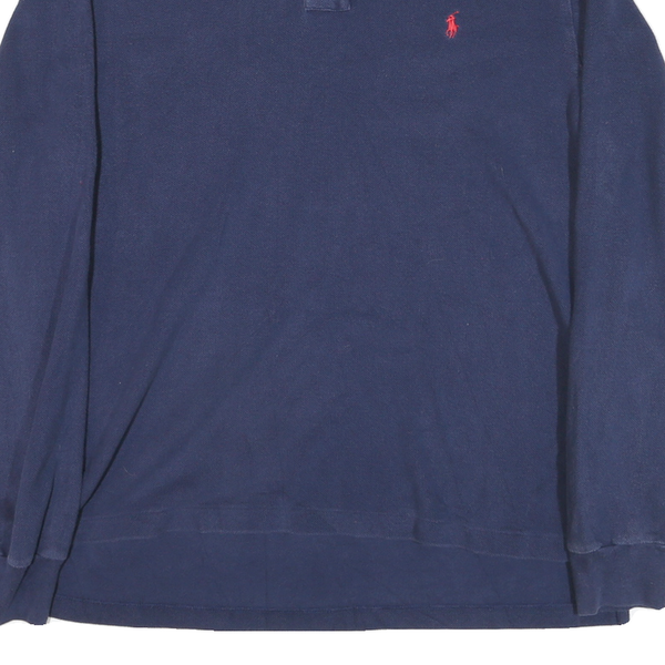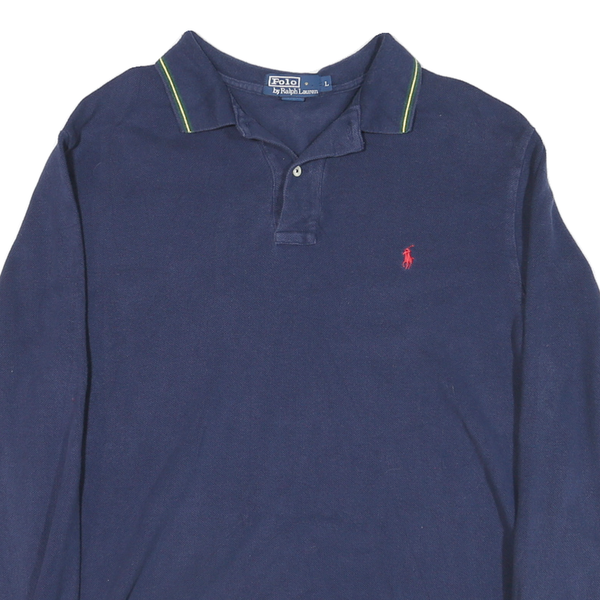 POLO RALPH LAUREN Mens Navy Blue Long Sleeve Plain Polo Shirt L Classic Cotton