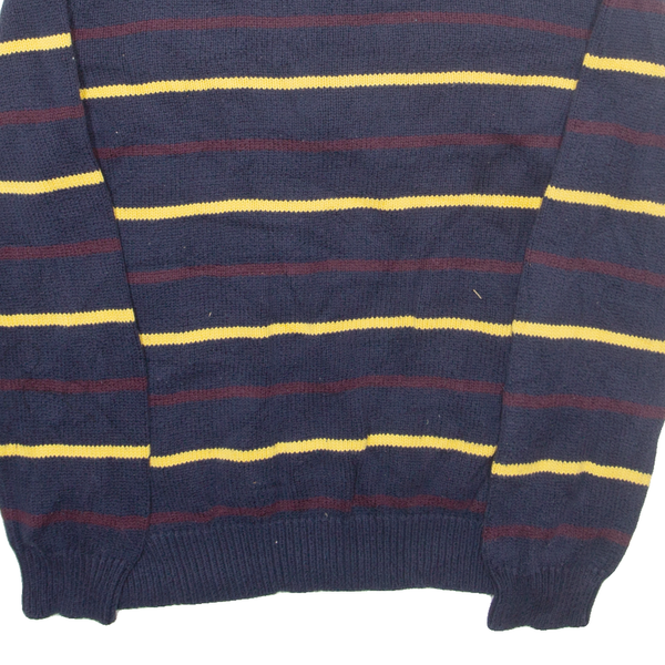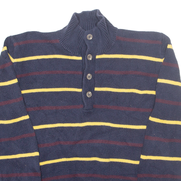 POLO RALPH LAUREN Mens Patterned Jumper Blue Striped Button Neck Tight Knit M