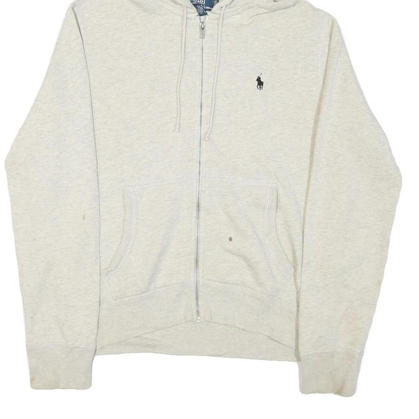 POLO RALPH LAUREN Womens Cream Hoodie M Cotton Blend Zip Hooded Sweatshirt