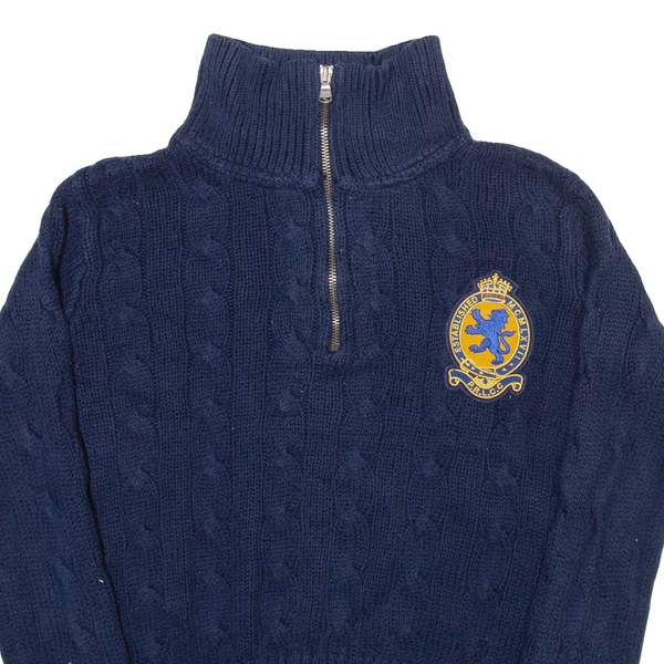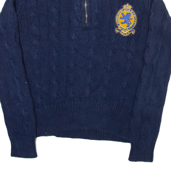 POLO RALPH LAUREN Womens Jumper Blue 1/4 Zip Cable Knit S