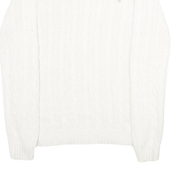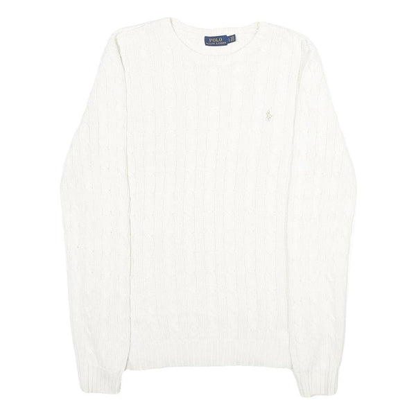Polo ralph lauren womens white patterned cotton jumper crew neck cable knit l