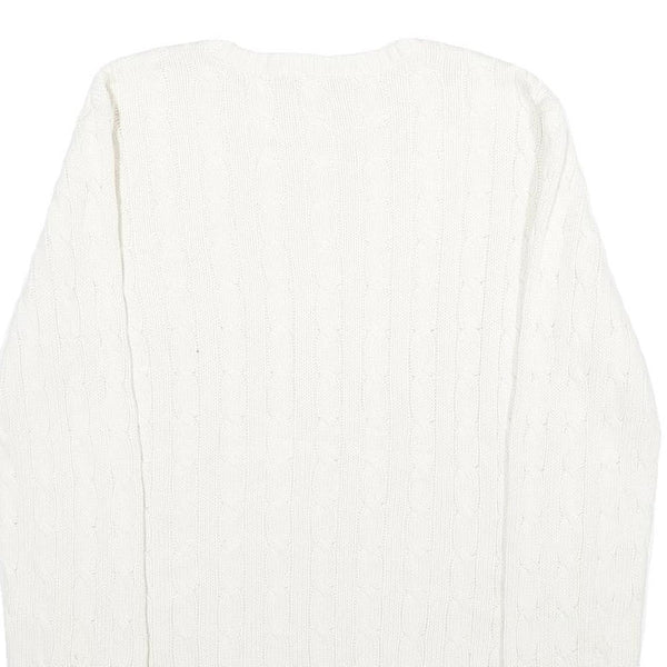Home POLO RALPH LAUREN Womens White Patterned Cotton Jumper Crew Neck Cable Knit L