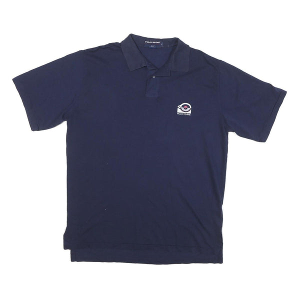 POLO SPORT RALPH LAUREN Mens Navy Blue Polo Tennis Short Sleeve Plain L Cotton
