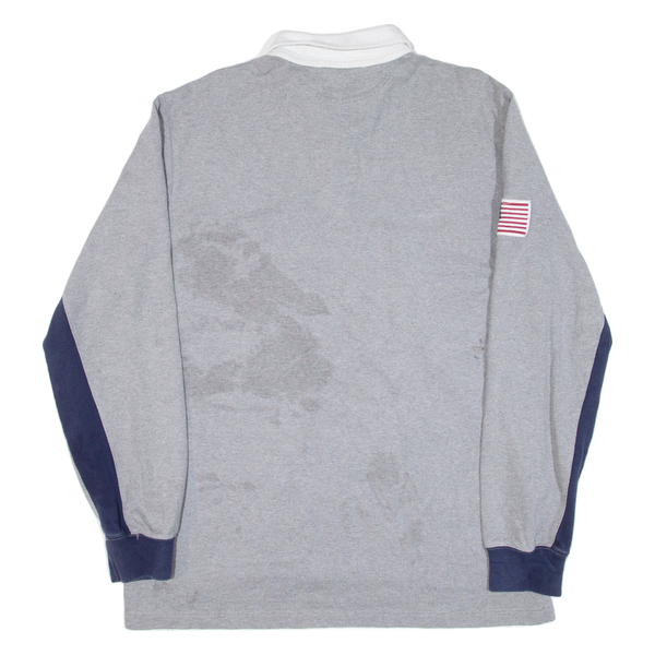 POLO SPORT RALPH LAUREN Mens Polo Shirt Grey Striped Long Sleeve L