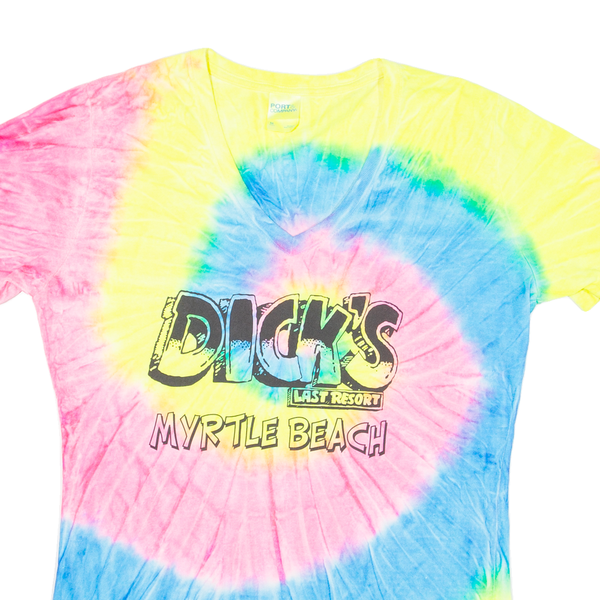 PORT & COMPANY Myrtle Beach Womens Tie Dye T-Shirt Pink USA V-Neck M