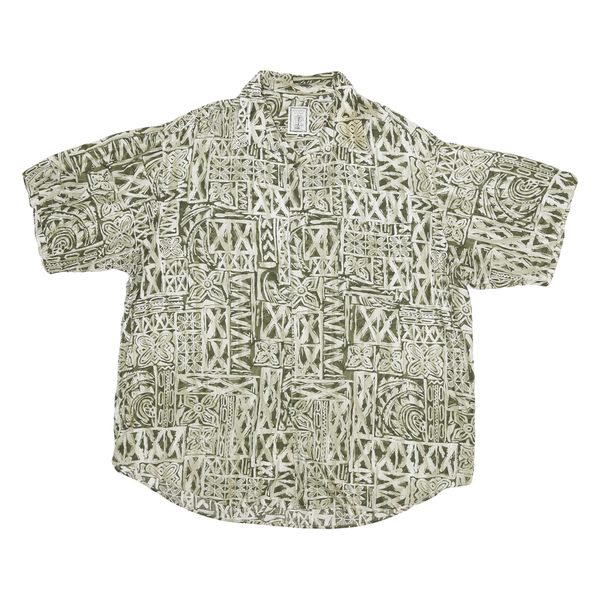 POUNDTREE AND YORKE Mens Green & Cream Cotton Blend Casual Shirt XL Tropical