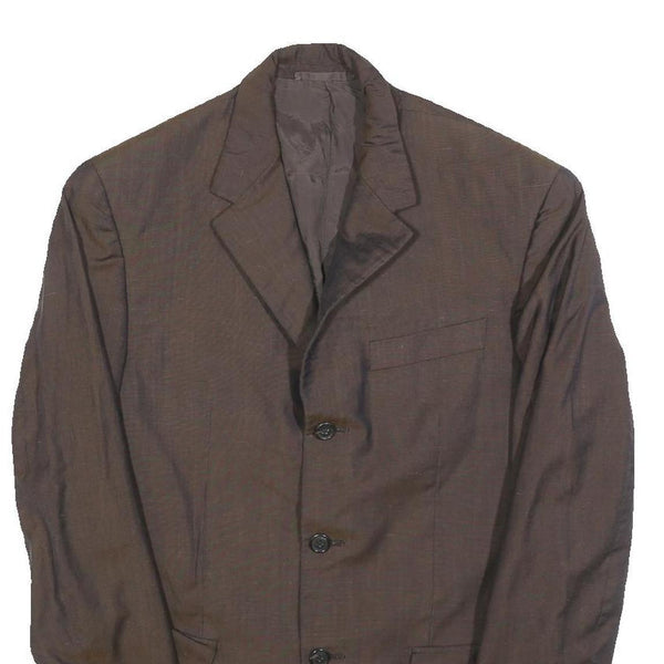 PRADA Mens Brown Button Wool Blend Classic Jacket M Plain Elegant Tailored