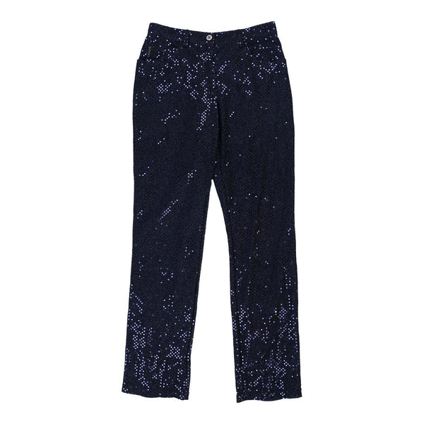 Notes: Trousers measure 30" waist, 27" inseam, 9" rise. Material composition is 100% polyester.